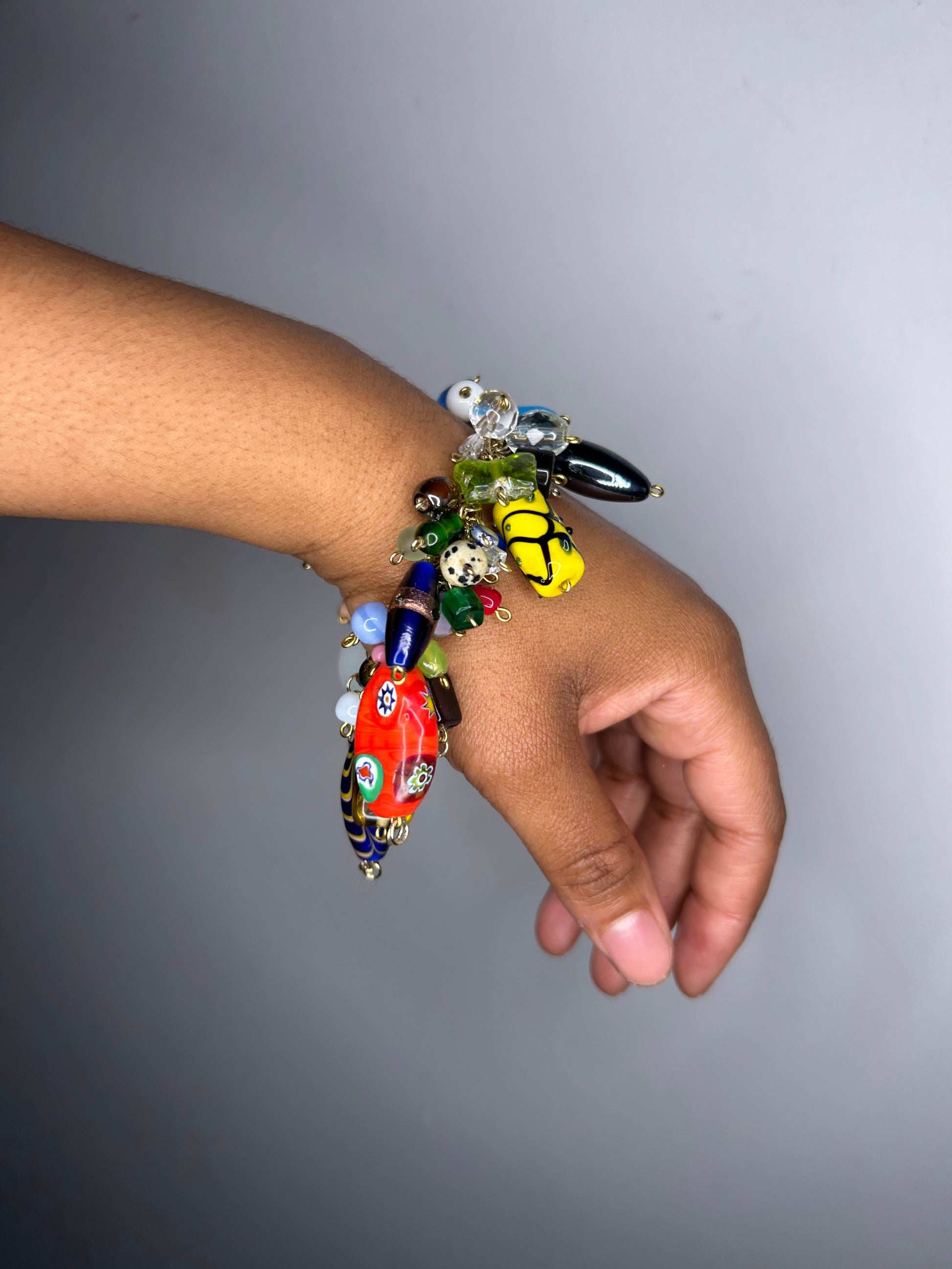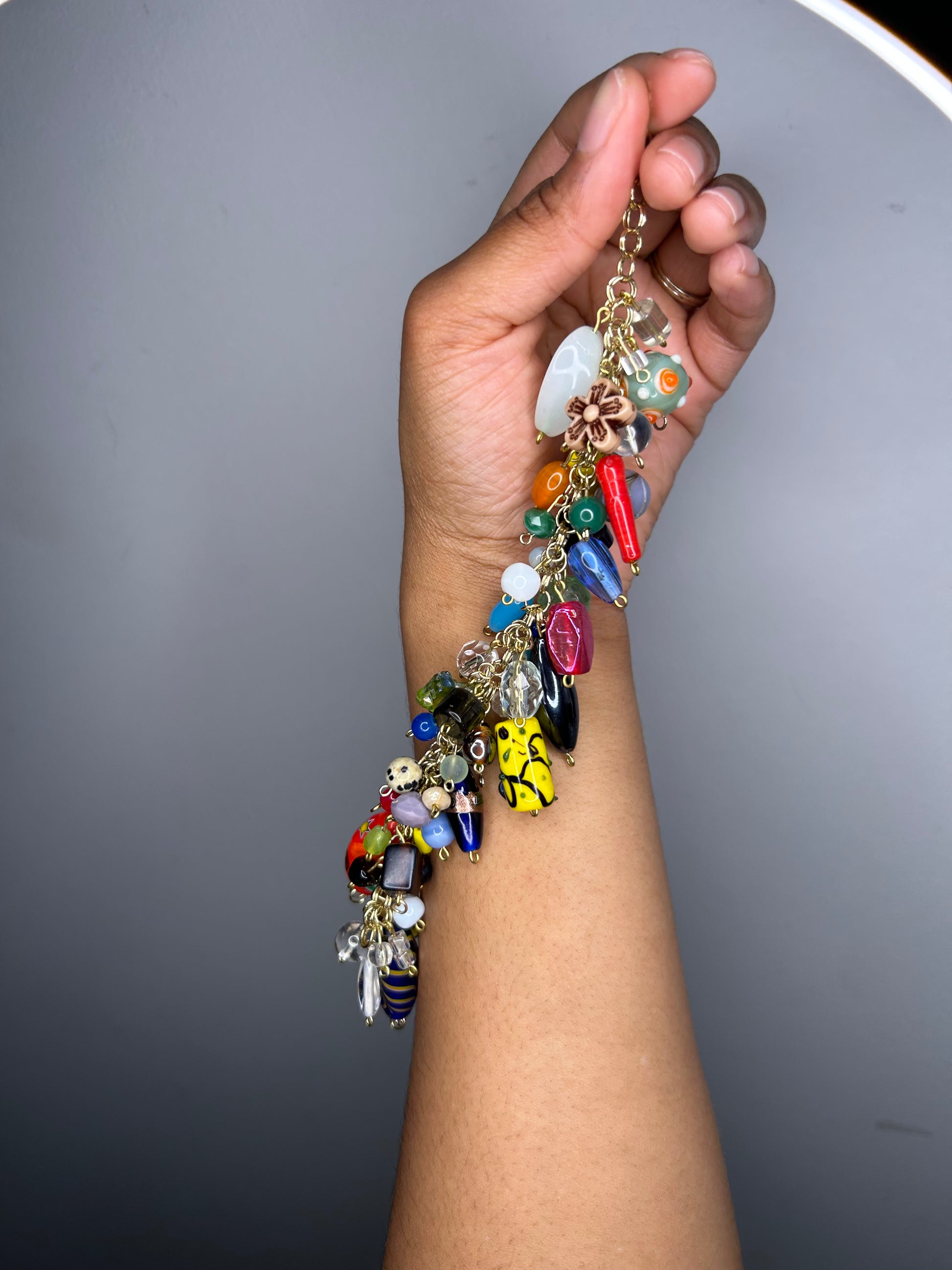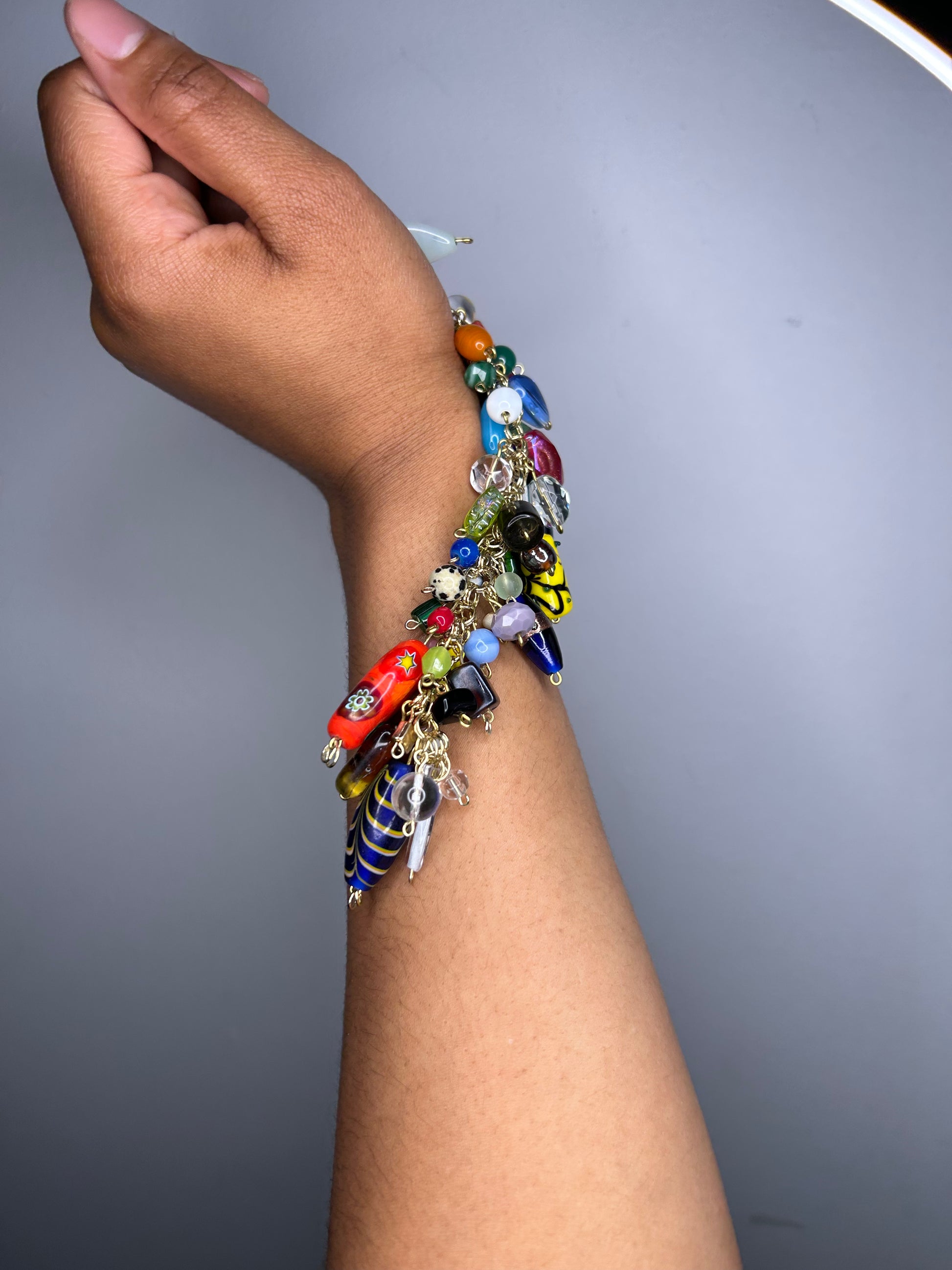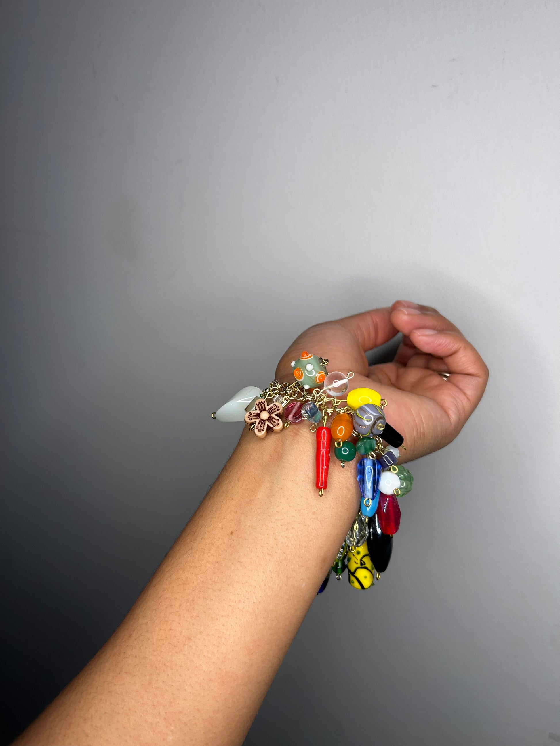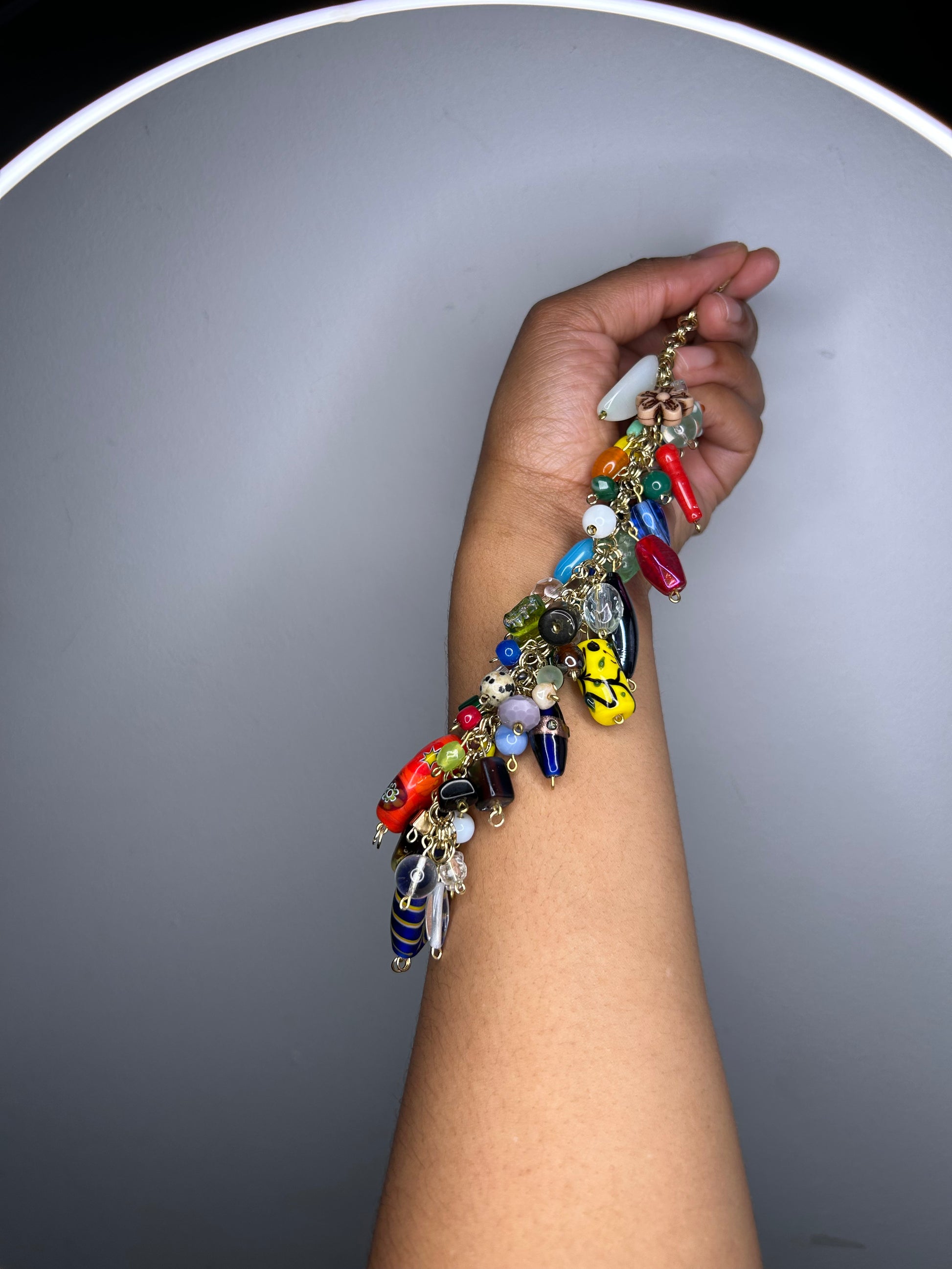 Material: Glass beads. Plastic beads. Gold Jump Rings. Gold Clasp.